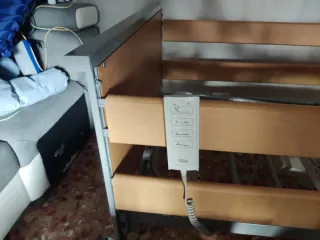 Se vende cama articulada eléctrica con colchón y colchoneta antiescaras. Cama regulable en altura por mando. Más mesa auxiliar. Todo usado solo un mes. Buen estado. - Estructura de metal y madera. La cama está desmontada. Todo para recoger en la Plaza Alta de Algeciras. Preguntar por Miguel. Contactar por correo electrónico . : mismamente1959@gmail.com