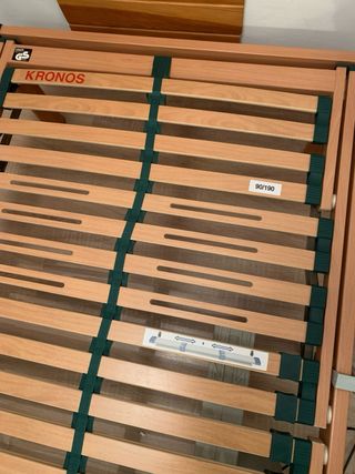 Base de cama articulada de madera con medidas de 90x190 cm. - Estructura principal de metal. - Láminas de madera. - Incluye soportes para sujetar el colchón. - Incluye mando inhalambrico. Compra presencial, no hago envío.
