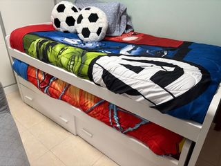 Cama nido con un diseño moderno y funcional, ideal para habitaciones infantiles o juveniles. - Incluye dos cajones de gran capacidad. - Estructura resistente y segura. - Acabado blanco.