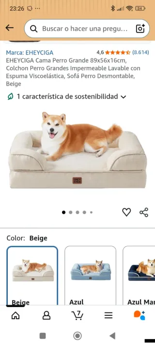 Cama para perro de la marca EHEYCIGA en color beige. Es impermeable y lavable, con espuma viscoelástica. - Medidas: 89x56x16cm. - Diseño desmontable.