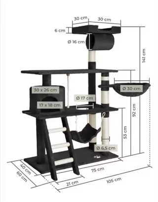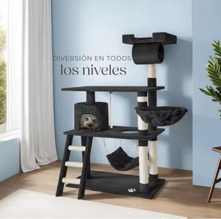 SIN ESTRENAR. Rascador para gatos, ideal para que tu mascota juegue y descanse. - Diseño de varios niveles. - Incluye hamaca y túnel. - Materiales resistentes y duraderos.