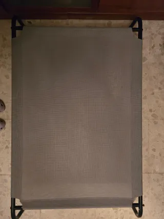 Cama elevada para mascotas, ideal para mantener a tu compañero cómodo y fresco. Su diseño permite una buena circulación de aire. - Estructura metálica resistente. - Tejido de malla transpirable. Esta un pelin un poco desgastada por uno de los lados (aparece en una de las fotos) por lo demas esta en buen estado. La compre por amazon, he subido exactamente la foto para que la veais. Se puede ver sin compromiso.