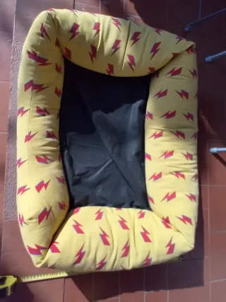 Cama para mascotas con un divertido estampado de rayos en amarillo y rojo. - Diseño acolchado para mayor comodidad. - Tejido suave al tacto. Tamaño 80x60