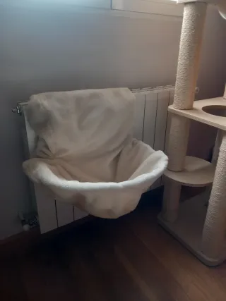 Cama mullida y espaciosa para gatos, ideal para que tu mascota descanse cómodamente al cañor del radiador. Nunca usado. Lavable. Alto 26cm. Ancho 39cm. Longitud 46cm - Material suave al tacto. - Diseño envolvente y seguro.