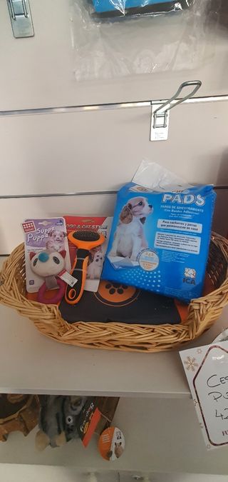 Lote para cachorro Compuesto por cesta cama Empapados Mordedor Peine Sorpresa al azar