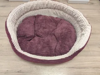 Cama redonda de peluche suave para mascotas. - Material de pelito muy mullido. - Diseño circular con borde elevado. Mide el diámetro exterior unos 65 cm y el interior unos 35 cm. Está recién lavada y secada en secadora por eso parece como despeluchada pero está prácticamente nueva.