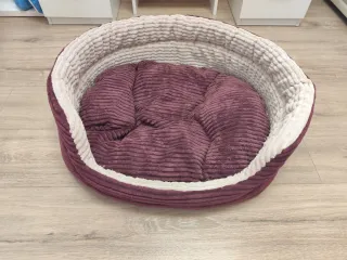 Cama redonda para mascotas con un diseño acolchado y suave. - Material exterior de pana. - Interior de felpa. - Borde elevado para mayor comodidad. Medidas: 60x55