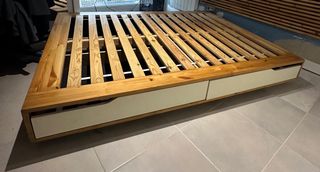 Se vende cama de matrimonio IKEA de 140x200 cm. Incluye cuatro amplios cajones de almacenaje integrados en la base. Excelente estado.