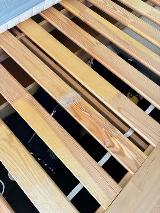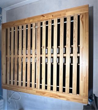 Base de cama de listones de Ikea. Proporciona un soporte firme y flexible para tu colchón. - Listones de madera. - Soportes de plástico. Está como nuevo sin ningún desperfecto. -Mueble 6 cajones con cristal protector en perfecto estado. Cama y cómoda cajones 250€ regalo el colchón. No se hacen envíos