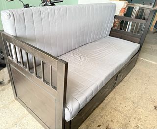 Sofá cama de madera de IKEA, con un diseño moderno y funcional. - Dos cajones de gran capacidad. - Colchón incluido.