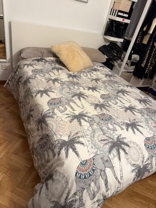 Se vende cama de matrimonio de Ikea con su colchón. - Estructura de madera. - cajones laterales - Tapizado en tela.