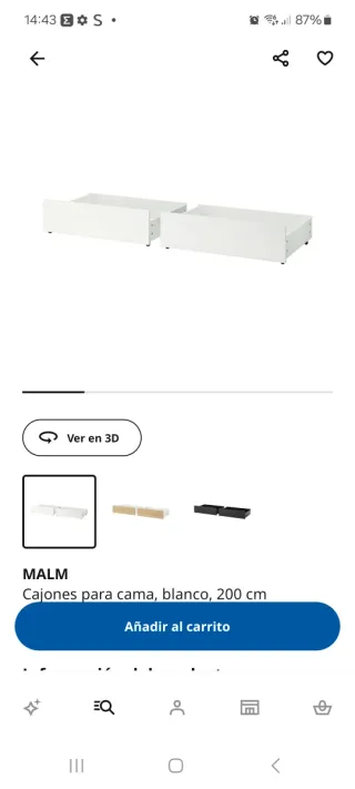 Cama malm de ikea original, está casi nuevo, mi hija le ha dado un uso muy limpio, tengo las fotos de la cama en casa interesados hablarme por chat, esta en muy buen estado e incluye todas las piezas. Su precio en ikea es de 264 euros - Estructura de madera. - Color blanco. - Incluye dos cajones de gran capacidad. - Incluye somier