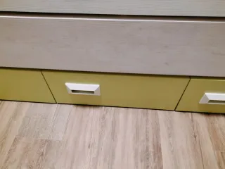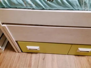 cama nido con 4 amplios cajones, mesa (54x117x76), balda (205x28x33) y cajonera (52x40x108) Se podría vender por separado.
