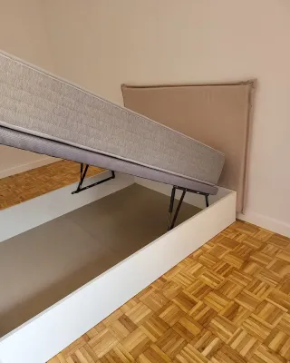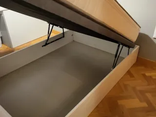 Cama individual con espacio de almacenamiento integrado. - Medidas de 90x200 cm. - Dos cajones amplios en la base para guardar objetos. - Diseño moderno y funcional. - ESTA DESMONTADA - NO TIENE COLCHON