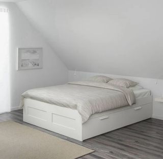 Dos cajones para cama Malm. - Color: Blanco y marrón. - Material: Madera y plástico.