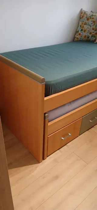 Cama nido en excelente estado, muy práctica para aprovechar el espacio. - Incluye dos camas. - Dispone de tres cajones de gran capacidad. - Estructura de madera.