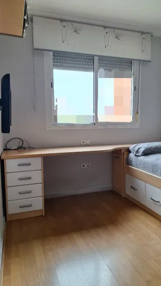 Precio muy rebajado .Litera con diseño moderno y funcional, ideal para optimizar el espacio. - Estructura robusta en blanco y gris. - Escalera lateral para acceso seguro. - Cajones inferiores muy grandes para almacenamiento. Se vende con zapatero, escritorio integrado y cajonera ( Menos las sillas). Muy bien cuidado. Negociable. Lo puede ver sin compromiso o preguntar cualquier duda. La medidas de la cama son las normales de un dormitorio juvenil y el escritorio es de 190cm