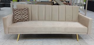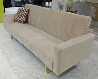 Sofá Cama Grey, Terciopelo, Patas Doradas. OFERTA!
