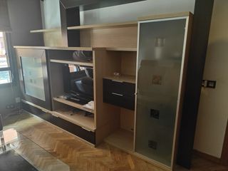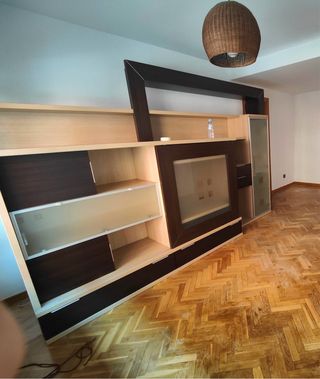 Muebles de salón de madera y cristal, de estilo moderno y dos camas madera.Se regalan por mudanza. Hay que desmontar para sacar.