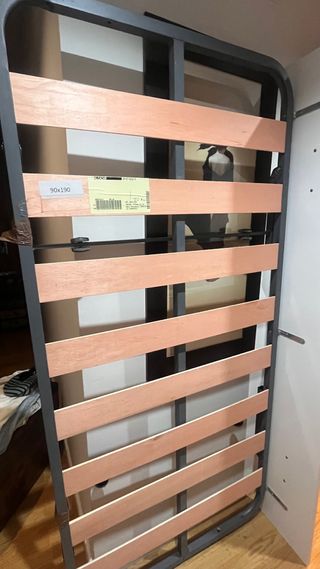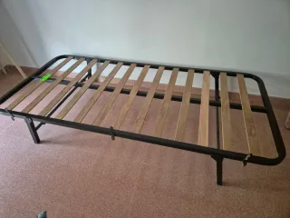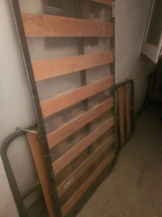 El día 20 tendré que quitar todo mi perfil por tema mudanza!! Vendo, ponle tu el precio❗️ Somier inferior plegable con estructura metálica y láminas de madera. - Medidas: 90x190 cm. - Diseño plegable para fácil almacenamiento. - Base de listones para colchón.