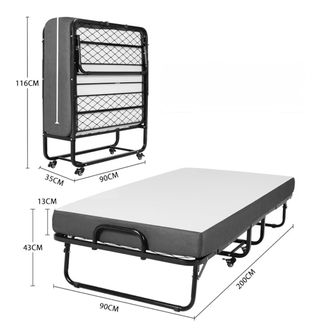 Cama plegable Brinlawb de 90x200cm con colchón y 4 ruedas. Ideal para invitados o dormitorios. - Colchón plegable de 10cm de grosor. - Marco de metal fuerte y estable.