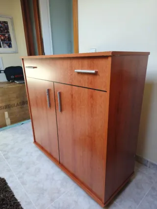 Mueble con cama plegable. En perfecto estado y muy poco usado. Ideal para tenerlo en la habitación en caso de necesitar una cama extra. Montado sobre ruedas. Dimensiones colchón 174*90 cm. Dimensiones del mueble : 97*102*40 cm. - Estructura de madera y metal. - Color beige y marrón. Ubicación Oliva, se puede llevar hasta Dénia y alrededores.