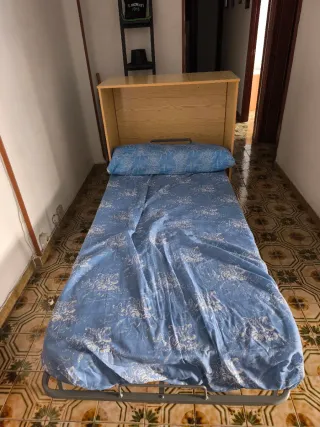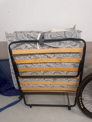Cama plegable individual de 90 cm. Está en buen estado y lista para usar. - Estructura metálica y listones de madera. - Perfecta para invitados o espacios reducidos. - Fácil de montar y plegar.