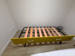 Somier de 90x190 cm, con una estructura que combina metal y madera. - Base de láminas de madera. - Marco exterior de metal. - Ruedas para facilitar su movilidad. -plegable -precio negociable
