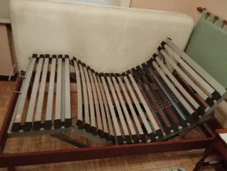 Se vende base de cama articulada de 190x90 cm junto con su colchón. - Base de cama articulada. - Colchón incluido. Eléctrica patas en cerezo