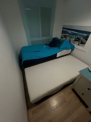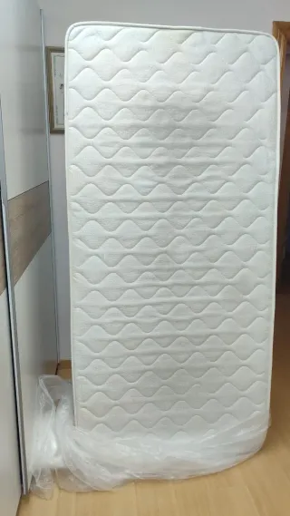 Base y colchon de cama individual de 90x190 cm. - Estructura metálica resistente. - Láminas de madera. - colchón ergonómico