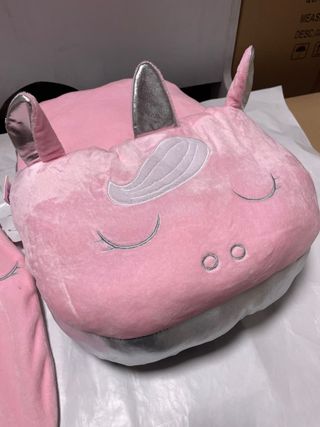 Adorable bolsa de agua caliente con forma de unicornio, perfecta para mantener los pies calientes. Su diseño suave y tierno la hace ideal para usar en casa. - Acabado aterciopelado. - Detalles plateados en cuerno y orejas. - Cierre seguro para la bolsa de agua. Se puede vender junto o separado Calientapies y bolsa: