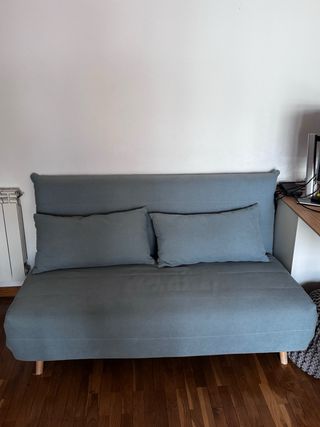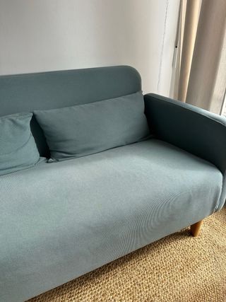 🛋️ Sofá cama 2 plazas color verde agua – diseño moderno y súper práctico 📏 Medidas como sofá: Alto 82 cm × Ancho 150 cm × Profundo 91 cm 🛏️ Medidas cama desplegada: 140 cm (ancho) × 193 cm (largo) × ~13 cm de grosor ✨ Por qué te va a encantar - Se transforma en cama doble cómoda ideal para invitados 🛌 - Color verde agua precioso que da vida a cualquier estancia - Diseño actual y fácil de combinar Estado excelente, bien cuidado y listo para usar 💡 Perfecto si buscas una solución dos en uno: sofá acogedor + cama funcional sin gastar en uno nuevo. 📍 Entrega en mano en Madrid 28034