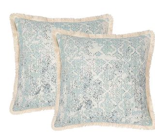 2 fundas de cojin estampado a una cara estilo étnico con flecos en el borde . Color verde agua Medudas 45x45 cm