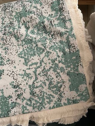 Conjunto de manta pie de cama o sillón y dos fundas de cojines en un color turquesa/verde agua de Ikea. Tamaño cojines 50x50 Manta 130x170