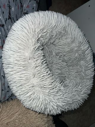 Cama suave y acogedora para mascotas pequeñas. Su diseño circular ofrece un espacio seguro y cómodo para descansar. - Materiales de felpa. - Forma redonda. - Sin uso apenas ya que le gusto otra casita que habia en casa