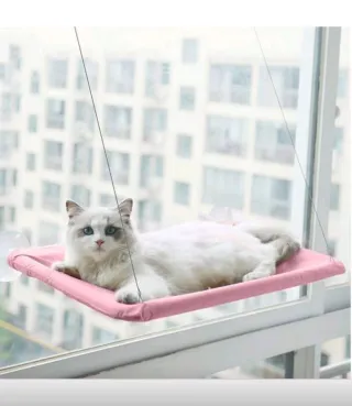 Hamaca para gato que se cuelga en la ventana. Ideal para que tu mascota disfrute del sol y las vistas. - Diseño cómodo y seguro. - Fácil de instalar con ventosas.