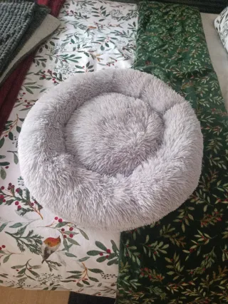 Cama suave y acogedora para mascotas. - Diseño redondo con bordes elevados. - Material de felpa muy mullido. - Ideal para que tu mascota descanse. -50cm diámetro NUEVA. La compré para mi gato pero no se ha tumbado nunca, por eso la vendo. Precio original 14'99€