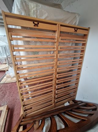 Estructura de cama lattoflex de matrimonio tamaño 180. Tiene estructuras vasculantes para una mayor comodidad. Los cabeceros y pieceros se venden con el somier por 50€. Somier grande 180 y 140 ancho. Cabecero grande 140 cm ancho 105 alto Piecero 140 ancho 90 alto