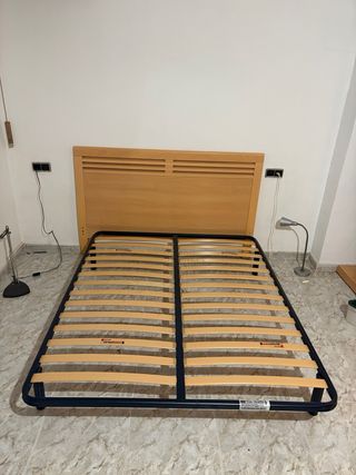 Base de cama doble de listones de madera, ideal para colchones de 150x190 cm. Si quereis os podeis llevar el colchon viejo de regalo. Esta viejo pero funciona bien - Estructura robusta de metal y madera. - Diseño de listones para ventilación del colchón.