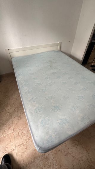 Colchón de cama doble que ha sido utilizado. Presenta manchas. - Tejido exterior: es una funda que lo cubre. El colchon esta manchado. Tambien regalo el cabecero