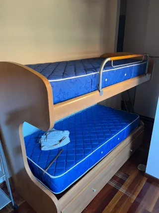 Cama nido, doble cama y tres cajones zapatero, todo a conjunto. La cama de arriba ni se ha utilizado, está en perfecto estado sin arañazos ni nada como nueva solo la cambio por tamaño