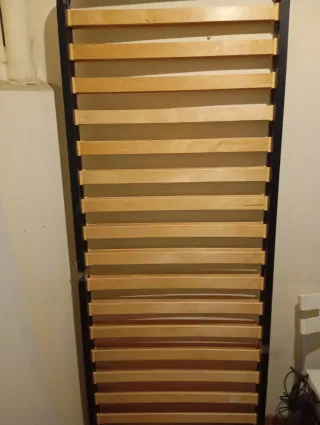 Se venden dos somieres, uno para cama pequeña y otro para cama grande. Ambos están fabricados con una estructura metálica y lamas de madera. - Somier para cama individual. - Somier para cama doble. - Combinación de metal y madera. *** Se regala colchón para cama individual.