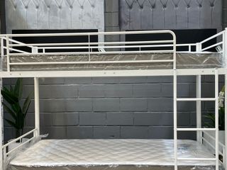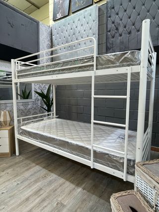 Cama litera con estructura metálica y colchones. - Estructura de metal resistente. - Colchón superior. - Colchón inferior amplio. Precio sin colchones --> 110€ Precio con colchones --> 275€