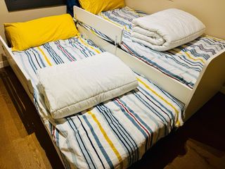 Cama nido doble con respaldero y cabecero y 2colchones, 2somieres+ Conjunto de colcha de invierno para cama de 90 hasta 110×190, cojín y alfombra(1'20ancho×180largo) Comprado en MUEBLES REY Muy buenas calidad