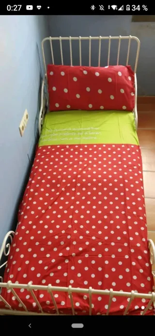 Cama extensible Ikea (ver medidas en la foto), muy poco uso. Está desmontada. Incluye colchon modular (3 partes). No se envía, a recoger en Cornudella de Montsant (negociable lugar de recogida cerca de Reus).