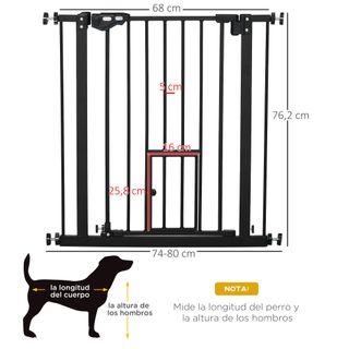 🚪 BARRERA DE SEGURIDAD PAWHUT 🐾 ✅ Doble cierre: Sistema de bloqueo superior y dos pestillos laterales para mayor seguridad y control de apertura. ✅ Cierre automático: Se cierra sola si el ángulo de apertura es menor de 90°. Permanece abierta si supera ese ángulo. ✅ Con puerta para mascotas: Pequeña puerta integrada para que tus mascotas entren y salgan fácilmente. ✅ Resistente y segura: Estructura de acero con tratamiento sin plomo para mayor seguridad y durabilidad. 📏 Medidas: 68x76,2 cm | Ancho ajustable entre 74-80 cm 🔹 Ref: D06-122BK 🚚 Envío a toda España Trato en mano en Lliçà d'Amunt (a consultar)