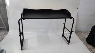 Es una mesa con ruedas para poner sobre una cama. Tanto el ancho como la altura son regulables por lo que se adaptan a cualquier medida y altura de cama. Muy práctica para poner sobre los pies de la cama y mover cuando sea necesario, para poner el ordenador, la comida... Etc. Práctica para personas que están encamadas o simplemente para quien le gusta trabajar desde la comodidad. Está bastante usada, y tiene sus detalles, por eso el precio, pero aun es completamente funcional y hace su servicio perfectamente. Se puede desmontar fácilmente para el transporte