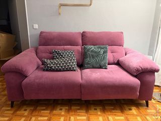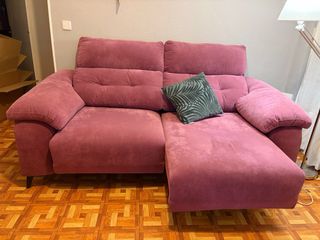 Como NUEVO! factura de 2024. Costó 900€ (rebajado) !!!! Es un sofá súper cómodo versátil y bonito. Se puede probar!!! OPORTUNIDAD POR MUDANZA. -Puede usarse tipo ches longue, con un bloque extendido; extender los 2 bloques, tipo sofá XXL o cama; y tipo sofá normal, plegando ambos bloques. -Ambos bloques tienen sistema extensible de carro, gran estabilidad (no se quedan flotando al extenderlos sino con apoyo de unas patas con ruedas) -Color rosa azalea / fucsia. Tapicería antimanchas lavable. -Patas estilo vintage altas, puedes pasar aspirador sin problema. Como nuevo, solo tiene un pequeño desperfecto en un pespunte derech