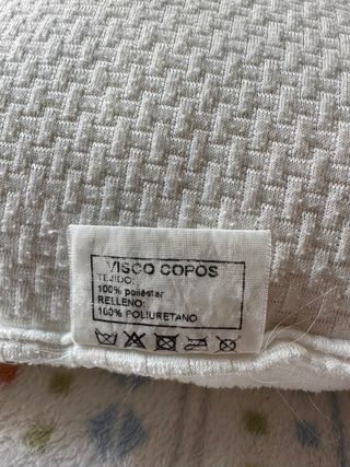 Almohada con tejido exterior de poliéster y relleno de poliuretano. - Tejido: 100% poliéster. - Relleno: 100% poliuretano. - Instrucciones de lavado: no lavar a máquina, no usar lejía, no planchar, no lavar en seco.