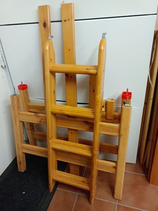 Litera de madera maciza de IKEA, ideal para habitaciones juveniles, invitados o casa rural Incluye dos colchones Pikolin Street y Flex normablock de muelles- Estructura robusta y resistente. - Diseño sencillo y funcional. - Perfecta para ahorrar espacio. - Se encuentra en buen estado. SU UBICACIÓN ES EN LA ZONA DE GANDESA ( TARRAGONA ) Se encuentra parcialmente desmontada con todos sus tornillos y cilindros de ajuste. Peso total 100 kg.